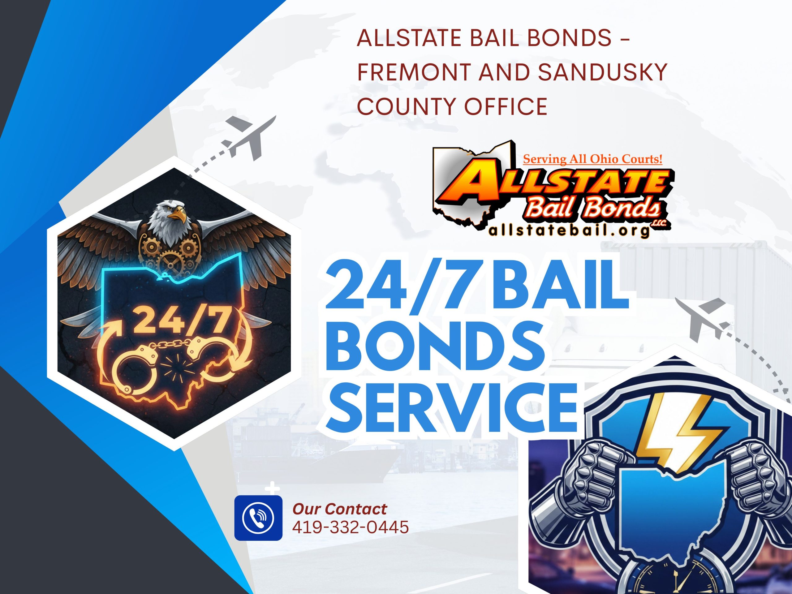 Allstate Bail Bonds is the #1 trusted bail bonds service in Fremont, Ohio, providing fast, reliable, and affordable bail bond assistance across Sandusky County, Clyde, Bellevue, and nearby areas. Located at 220 Holland St, Fremont, OH 43420, our licensed agents are available 24/7 to help families with quick jail release, Felony and Misdemeanor Bail Bonds, DUI bail bonds, Drug charge bail bonds, and Domestic violence bail bonds.
